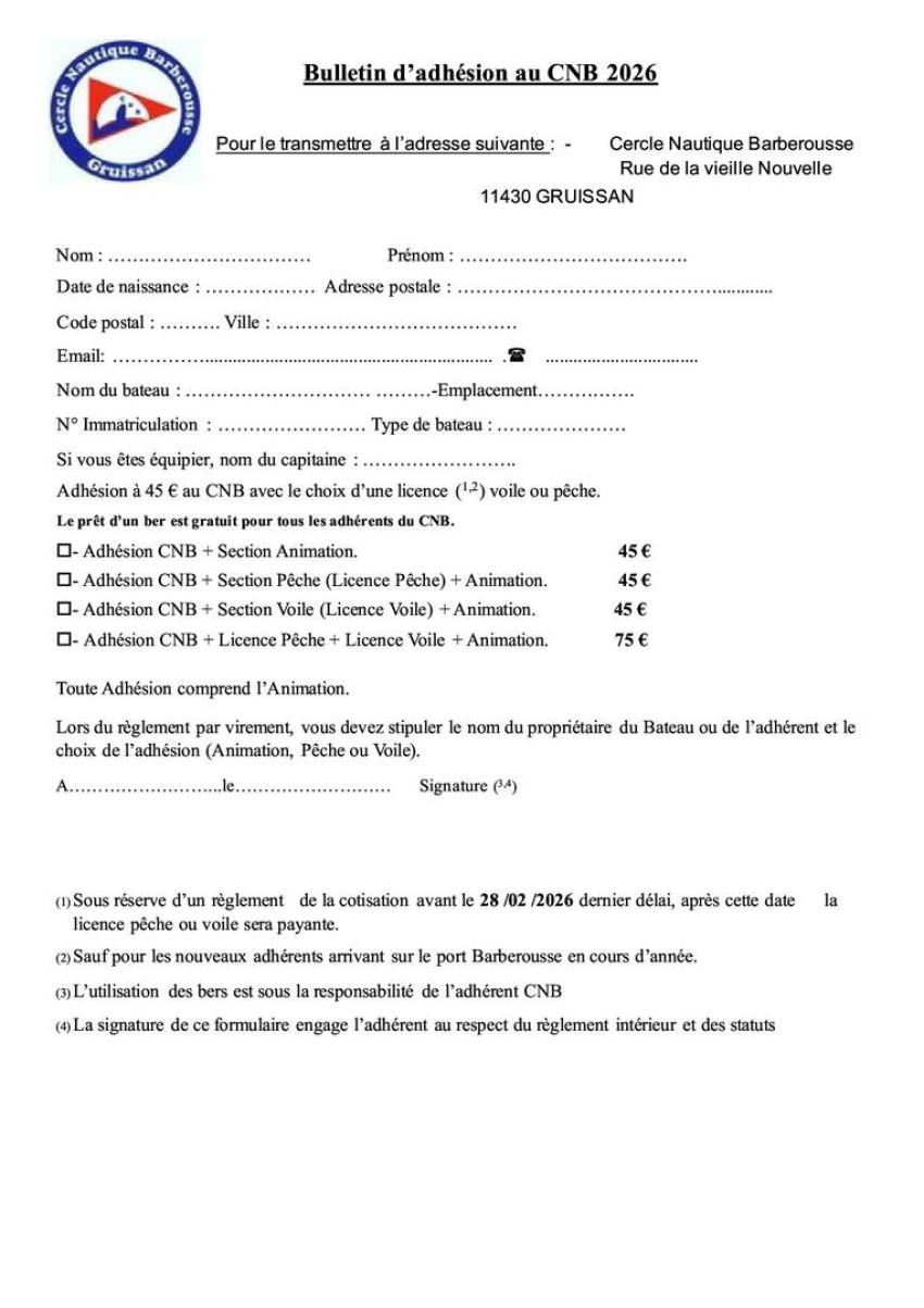 Dans tous les cas, le Cercle Nautique Barberousse ne peut