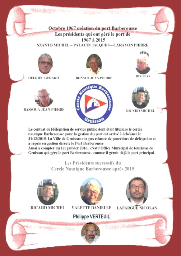 Le contrat de délégation de service public dont était titulaire le cercle nautique Barberousse pour la gestion du port est arrivé à échéance le 31/12/2015. La Ville de Gruissan n'a pas relancé de procédure de délégation et a repris en gestion directe le Port Barberousse