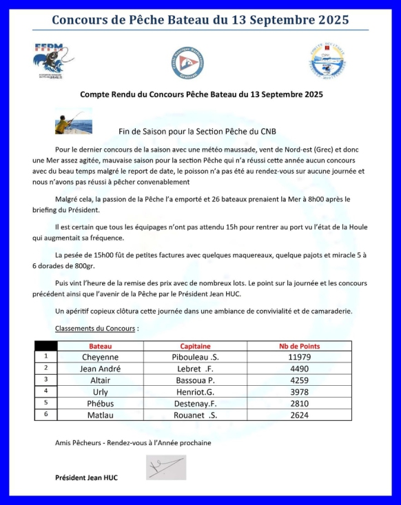 Bon début de saison pour la Section Pêche du CNB qui organisait son premier concours "Pêche Bateau" de la saison.