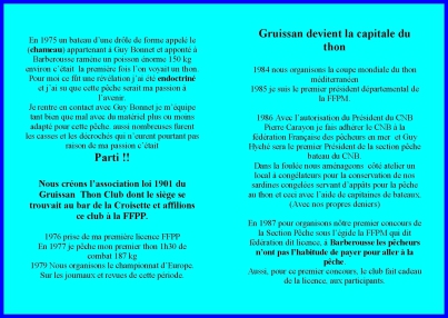 Concours inscrit au Calendrier Fédéral sous l'égide de la Fédération Française des pêcheurs en mer. Bonne participation des concurrents puisque dès 7 heures après s’être inscrit et munis de la Règlementation, 35 équipages (bateau) soit environ une centaine de pêcheurs ont descendu le Chenal du Grazel pour rejoindre les lieux de pêche sur la Grande Bleue, plate comme un miroir ou "pétole". Juste une petite brise et un beau soleil levant, belle journée de pêche.